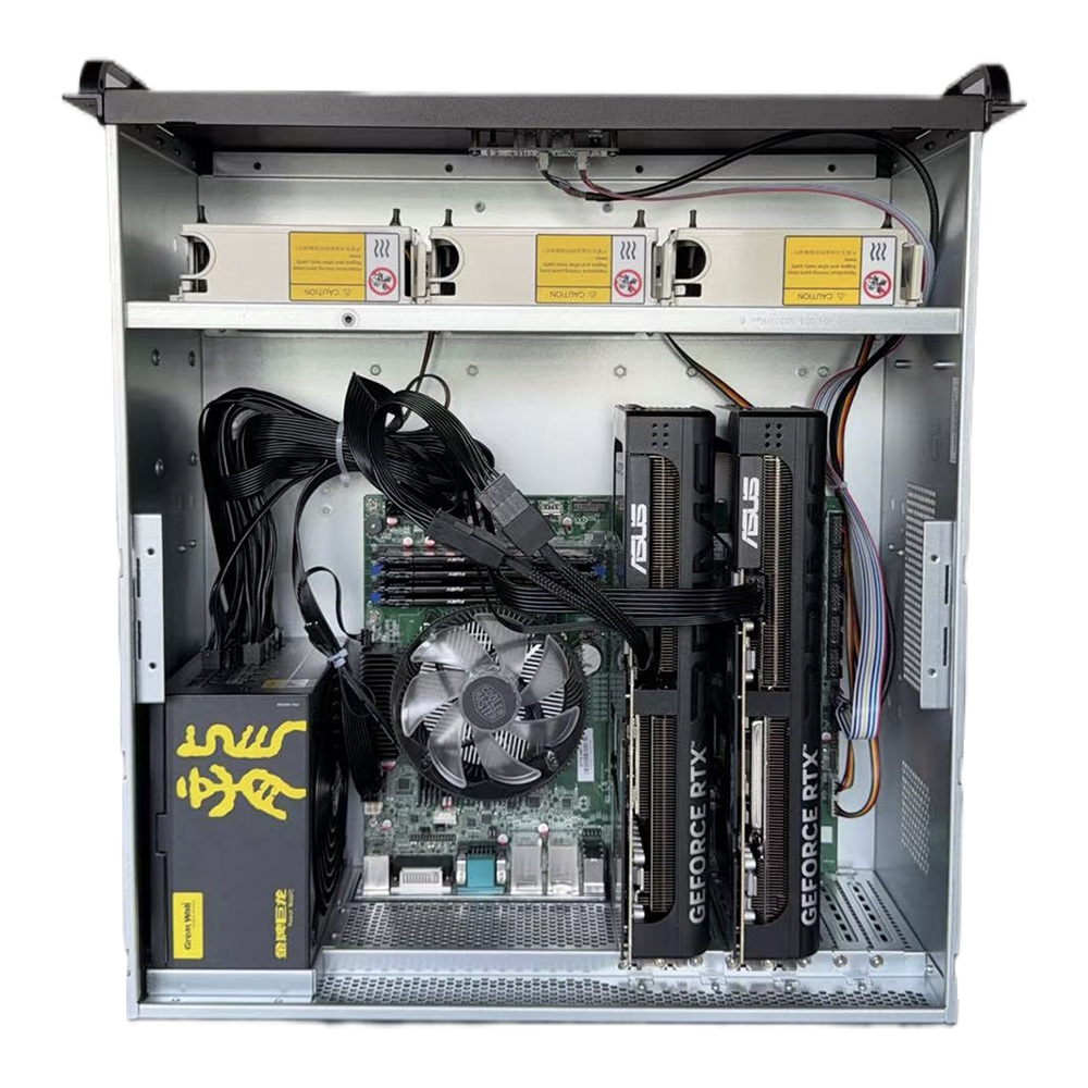▲ 内部结构俯视 — 双NVIDIA GeForce RTX显卡 + 长城1250W电源